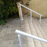 公的施設としての認可を目指して進めていた県人会館の改修工事である、障がい者用トイレおよび階段の手すりを設置する作業が完了間近となりました!